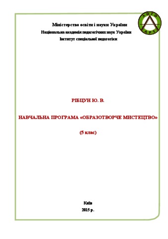 - Рібцун, Юлія Валентинівна (orcid.org/0000-0002-2672-3704) (2015) Educational program "Fine Arts" (Grade 5): set of training programs for preparation 5 grader special general education for children with severe speech disorders [Teaching Resource]