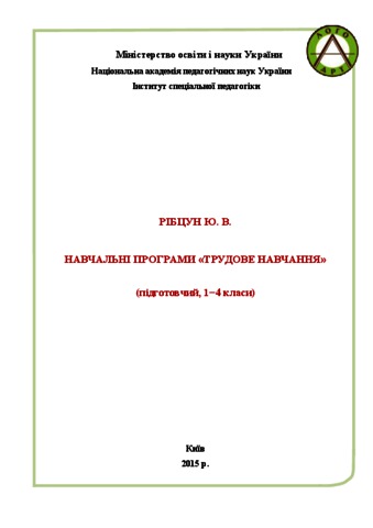 - Рібцун, Юлія Валентинівна (orcid.org/0000-0002-2672-3704) (2015) Educational program "Labor Studies" (preparatory 1-4 grade): set of training programs for preparation 1−4 graders special general education for children with severe speech disorders [Teaching Resource]