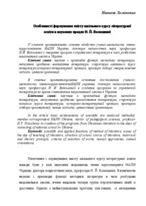 - Логвіненко, Наталія Михайлівна (2015) Features shaping the content of school course of literary education in academic writings N.Y. Voloshyna Теорія і методика навчання української літератури: актуальні проблеми, 1 (3). pp. 103-109.