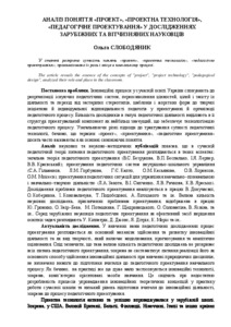 - Слободяник, О.В. (2015) An analysis of concept "project", "project technology", "pedagogical planning", is in researches of foreign and domestic research workers Наукові записки. Серія: Проблеми методики фізико-математичної і технологічної освіти, 3 (7). pp. 235-243. ISSN 978-966-7406-67-7
