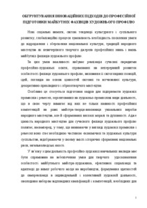 The article describes the principles of innovation of professional art schools: openness, diversification, continuity, continuity to the needs of the labor market, decentralization of management, the dialogue of cultures, an independent evaluation of the quality of graduates.