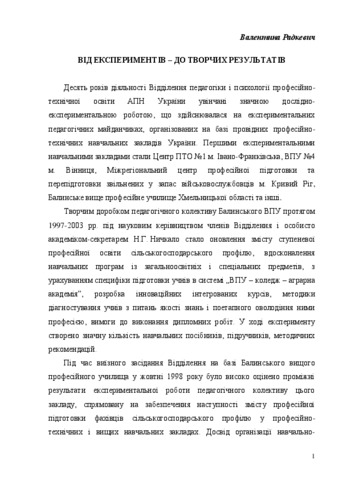 - Радкевич, В.О. (2007) From experiments – to creative results Професійно-технічна освіта, 4 (37). pp. 14-15.