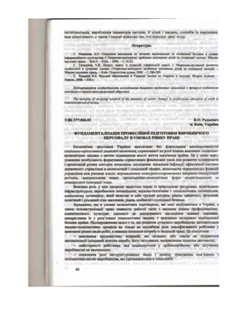 - Радкевич, В.О. (2008) Foundation of vocational training of production staff in terms of labor market Сучасні інформаційні технології та інноваційні методики навчання в підготовці фахівців: методологія, теорія, досвід, проблеми (16). pp. 44-49.