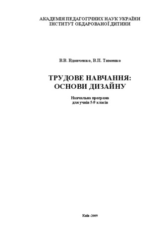 - Вдовченко, Віктор Володимирович and Тименко, Володимир Петрович (2009) Work Training: Fundamentals of design: Curriculum for pupils of 5-9 classes. [Teaching Resource]