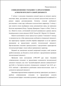 | Keywords: | стильові та продуктивні аспекти, інтелектуальна діяльність |