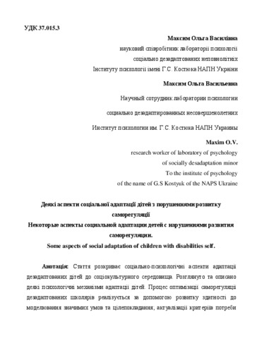 - Максим, О.В. (2015) Some aspects of social adaptation of children with disabilities sel Молодий вчений, 2 (17). pp. 419-422. ISSN 2304-5809