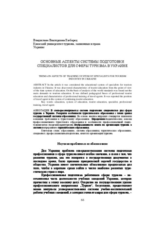 | Keywords: | education, system of education, tourist education, specialist, professional training, travel agent |