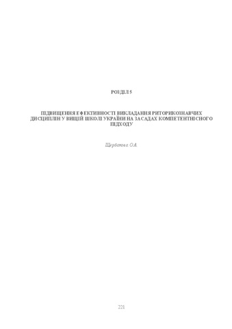 Text ((Розділ 5 «Підвищення ефективності викладання риторикознавчих дисциплін у вищій школі України на засадах компетентнісного підходу» О.А.Щербакової до колективної монографії «Оптимізація циклу соціально-гуманітарних дисциплін у вищій освіті України"))