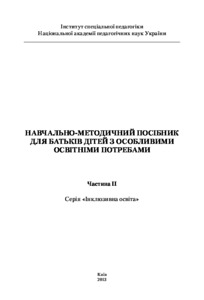 Training manual for parents of children with special educational needs (Part II). Educational materials highlight the features of the development, training and education of children with special needs; guidelines to ensure the educational needs of these students at home and in conditions of inclusive educational institutions; advices to parents concerning interaction with teachers and specialists, advocacy of their child’s rights. The manual is addressed to parents of children with special needs, teachers of secondary schools, methodical employee training courses teaching staff, students, university teachers, social workers.