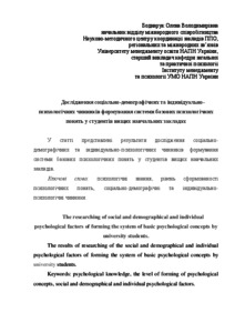 The results of researching of the social and demographical and individual psychological factors of forming the system of basic psychological concepts by university students.