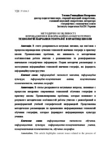 - Назаренко, Тетяна Геннадіївна (2015) Methodical features of implementation of information and computer technology teaching geography in school practice Нові технології навчання, 84. pp. 8-12.