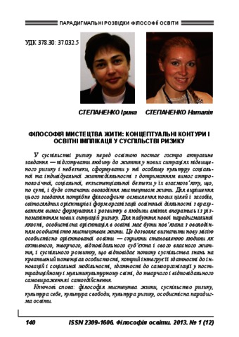 - Степаненко, І.В. and Степаненко, Н.Б. (2013) The Philosophy of the Technique to Be: the Conceptual Сontours and Educational Implications in the Risk Society Філософія освіти, 1 (12). pp. 140-161. ISSN 2309 - 1606