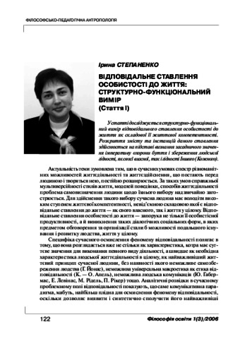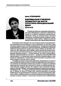 - Степаненко, І.В. (2006) Responsible Attitude of a Personality to Life: Structural and Functional Aspect (Part 1) Філософія освіти, 1 (3). pp. 122-132. ISSN 2309 - 1606