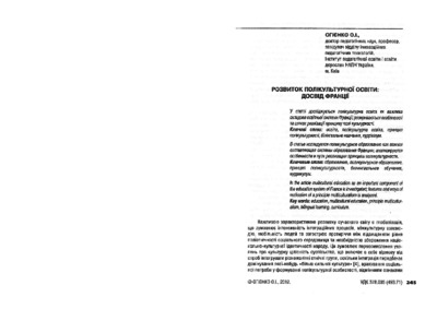 - Огієнко, О.І. (2012) The development of multicultural education: the French experience Вища освіта України у контексті інтеграції до європейського освітнього простору, 7 (40). pp. 245-252.
