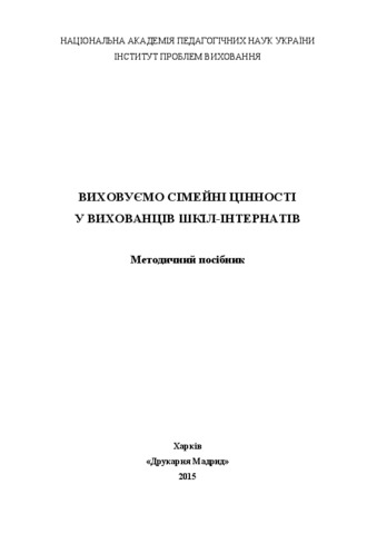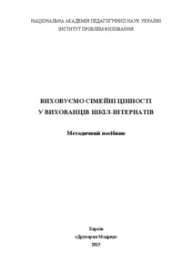 In methodical manual addresses the formation of values of family life of boarding schools pupils, as love, healthy living, mutual assistance, mutual respect, harmony; formation of boys and girls of boarding schools of conscious attitude to create a family. He addressed teaching staff of boarding schools, teachers and students of educational institutions, employees of government, education, researchers.
