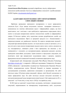- Дементієвська, Н.П. (2013) Адаптація і пілотування сайту інтерактивних симуляцій з фізики In: Звітна конференція ІІТЗН НАПН України . ІІТЗН НАПН України, м.Київ, Україна, pp. 134-135.