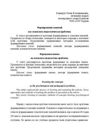 - Боднарук, Олена (2002) Forming the notions as psychologycal and pedagogical problem Проблеми сучасної педагогічної освіти, 4. pp. 267-271.