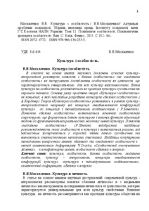 - Москаленко, В.В. (2015) Culture and Personality Актуальні проблеми психології: Збірник наукових праць Інституту психології імені Г.С.Костюка НАПН України. Том 11. Психологія особистості. Психологічна допомога особистості, 12. pp. 352-361. ISSN 2072- 4772
