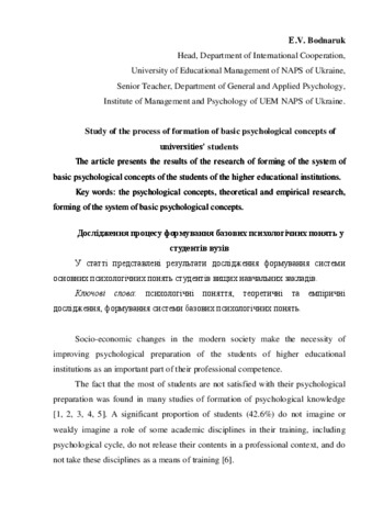 - Боднарук, Олена (2013) Study of the process of formation of basic psychological concepts of universities’ students European Applied Sciences, 1 (9). pp. 87-89. ISSN 2195-2183